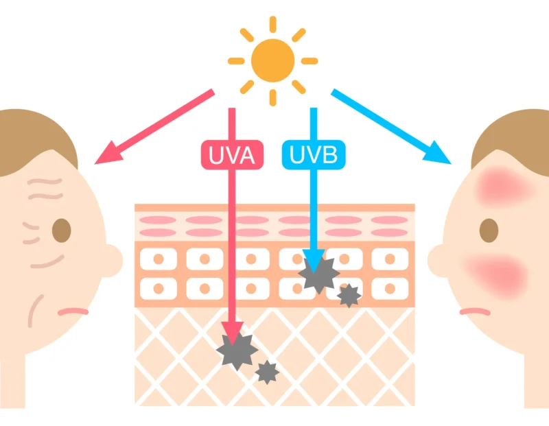 しかし、浴びてもジリジリとした感覚がないUV-Aは、表皮だけでなく肌の土台である真皮にもダメージを与え、シワ・たるみの原因になってしまいます。